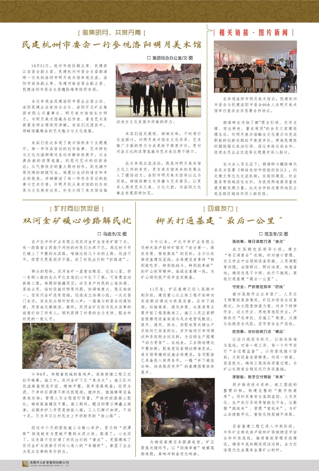 洛陽開元礦業(yè)集團有限公司簡介洛陽開元礦業(yè)集團有限公司,始成立于2006年,位于洛陽市開元大道269號。集團旗下共有五余家全資子公司,業(yè)務(wù)涉及有色金屬礦山開發(fā)、礦產(chǎn)品購銷與進出口貿(mào)易、房地產(chǎn)開發(fā)、文化藝術(shù)、企業(yè)管理與咨詢、資本投資等多個領(lǐng)域。民建河南省委委員、民建河南省委企業(yè)委副主任、民建洛陽市委委員、企業(yè)委主任、洛陽民建企業(yè)家協(xié)會會長許明月是公司創(chuàng)始人,現(xiàn)任洛陽開元礦業(yè)集團有限公司董事長。在礦業(yè)領(lǐng)域,洛陽開元礦業(yè)集團擁有多家實力雄厚的子公司:貴州開元礦業(yè)有限公司探、采礦權(quán)面積共11.33平方公里;興??h銅鑫礦業(yè)有限公司探礦權(quán)面積8.76平方公里,礦山資源潛力巨大;2021年,開元集團與盧氏中科礦業(yè)有限公司開展戰(zhàn)略合作。盧氏中科礦業(yè)有限公司專注于有色金屬的浮選、加工和銷售,擁有強大的技術(shù)支撐平臺,是集探、采、選、冶、研為一體的中大型綜合礦業(yè)企業(yè)。目前,盧氏中科王家河1000噸選礦廠已成功投產(chǎn),雙河金礦、柳關(guān)欒盧鉛鋅礦相繼順利開工,樓房銀礦與圪老灣鉛鋅礦的深部探礦重大突破,標志著礦山版圖取得重大進展,為開元集團后續(xù)發(fā)展奠定了堅實基礎(chǔ)。在文化傳媒領(lǐng)域,洛陽市明月美術(shù)館通過豐富多樣的藝術(shù)展覽、學(xué)術(shù)研討和公共教育活動,努力打造一個集展覽、交流、教育、研究為一體的綜合性藝術(shù)平臺。此外,在金融投資領(lǐng)域,開元集團旗下的北京明峰資本管理有限公司專注于投資具有高增長潛力的優(yōu)秀企業(yè),特別是高科技、新能源、環(huán)保等新興產(chǎn)業(yè),為客戶提供個性化的資產(chǎn)配置服務(wù)。在做好企業(yè)經(jīng)營的同時,開元集團始終不忘企業(yè)的社會責(zé)任和家國情懷,以突出的愛心公益事跡,開展了一系列公益慈善活動:“民建林”公益事業(yè)通過“思源基金”“幫幫公益”線上公益平臺,與眾多愛心人士籌措資金20余萬元;資助541名貧困大學(xué)生共計270余萬元,推進“數(shù)字助力——河南AI人才培養(yǎng)”;捐款10萬元,馳援京津冀、黑龍江洪水地質(zhì)災(zāi)害……公司于2017年底被洛陽市慈善總會評為“洛陽慈善風(fēng)云榜——十大愛心集體”。洛陽開元礦業(yè)集團有限公司秉承持續(xù)發(fā)展理念,憑借多年來良好的企業(yè)信譽與經(jīng)營業(yè)績,與全國多家企業(yè)建立了良好合作關(guān)系,受到社會各界的一致好評,多次榮獲“納稅標兵”“先進企業(yè)”“招商引資模范企業(yè)”等榮譽稱號?;赝麃頃r路,開元人勠力同心,以“闖”的精神和“創(chuàng)”的勁頭,一路披荊斬棘,踏過千山萬水;展望新未來,開元人凝心聚力,不執(zhí)于“舊”,無畏于“新”,秉承“勇于跨越,追求卓越”的企業(yè)精神,乘著國家高質(zhì)量發(fā)展新征程的東風(fēng),跨過高山,越過大海,向著集團多元化、國際化的目標,逐夢遠航,跨越前行!